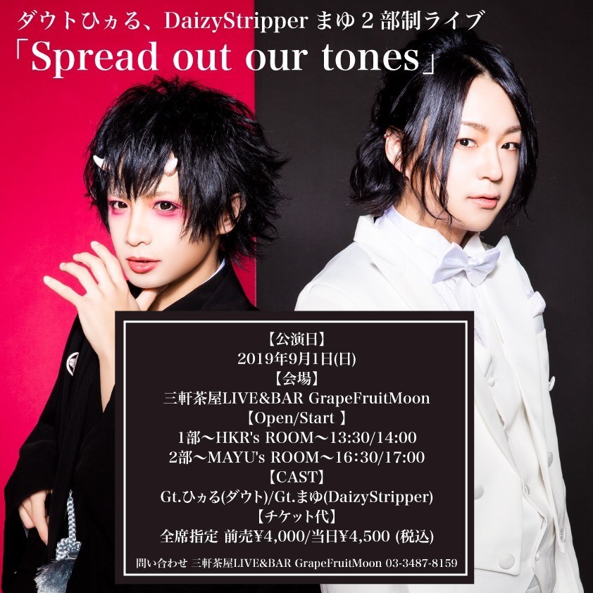 ダウトひヵる、DaizyStripperまゆによる2部制ライブ「Spread out our tones」チケット発売情報!