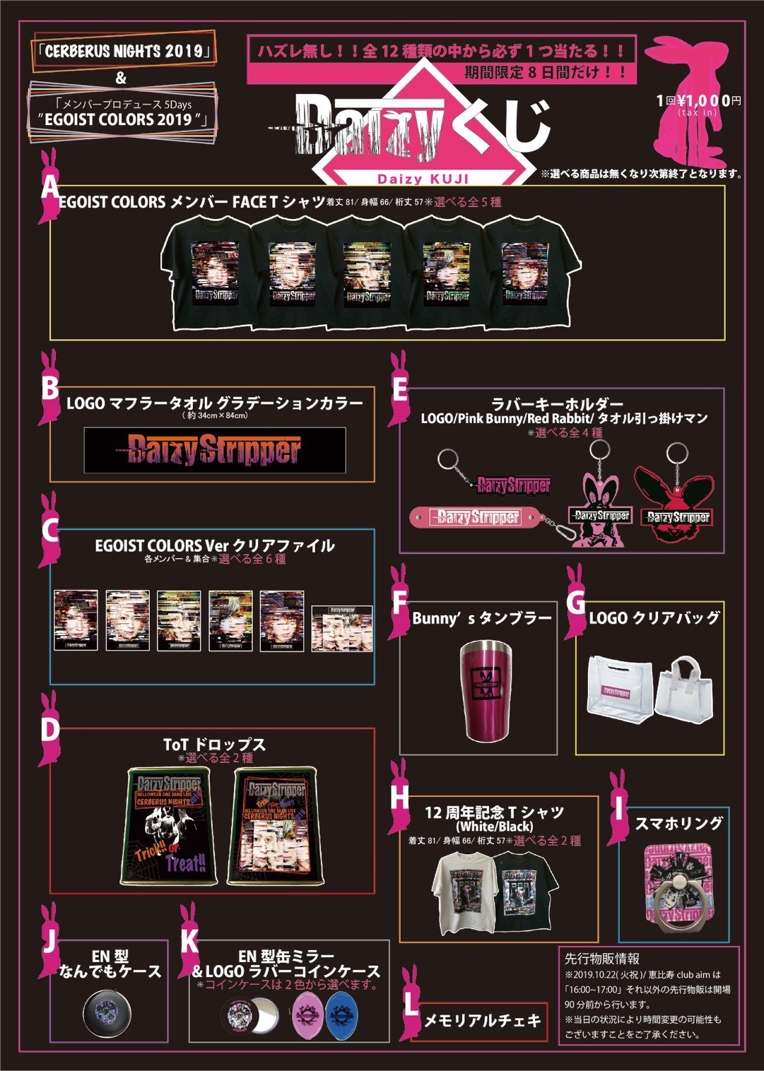 「CERBERUS NIGHTS 2019」&「メンバープロデュース5Days“EGOIST COLORS 2019”」期間限定8日間だけのDaizyクジ発売決定!