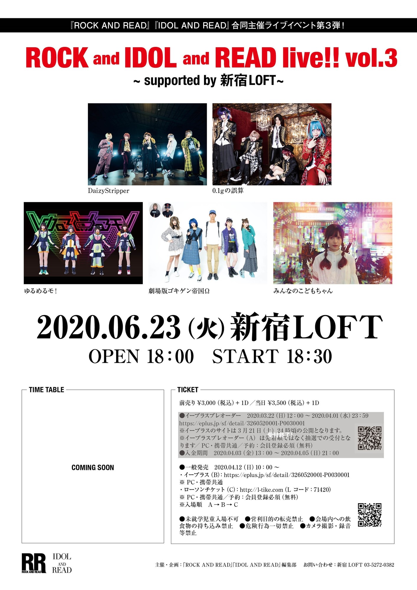 <6/23公演のLOFT店頭でのチケット発売に関してのお知らせ> 政府の緊急事態宣言を受け、4/8〜新宿LOFTが休業となったため、 6/23公演のLOFT店頭のチケット発売は無しに変更となりました。 一般発売は、4/12 10:00〜発売のイープラスとローソンのみとなりますのでご注意下さい。 急な変更で申し訳ありませんが、ご理解下さいますようお願い致します。