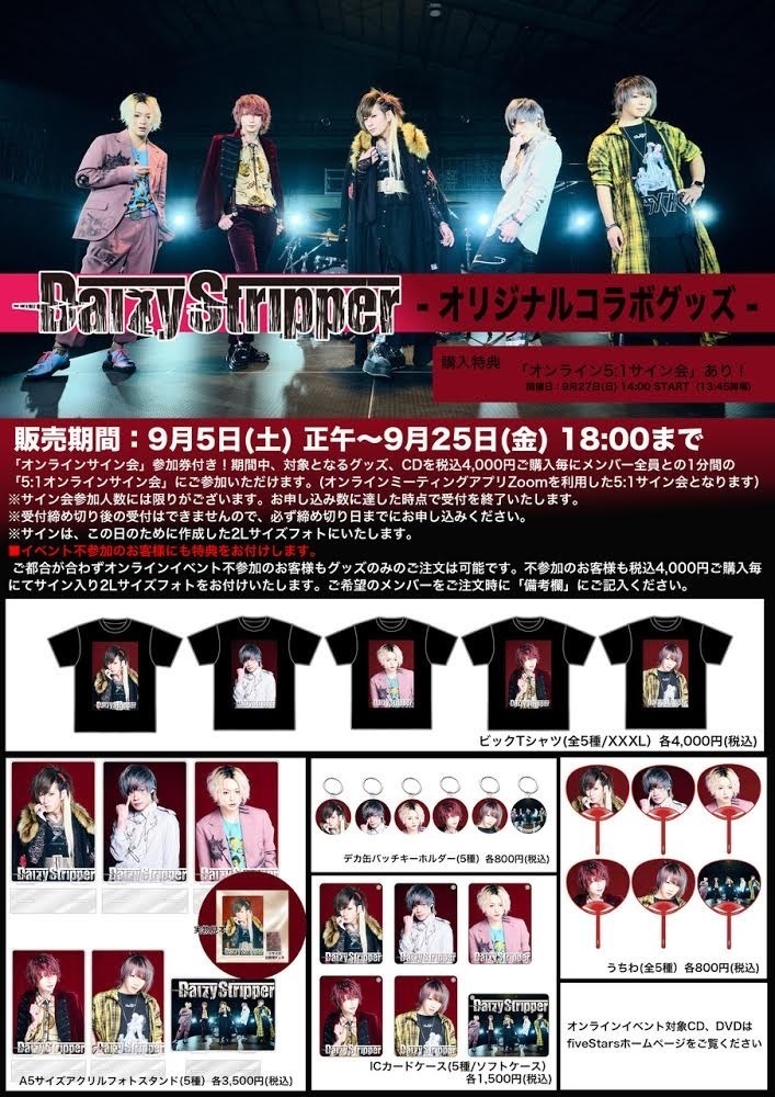オリジナルグッズ、CDをご購入頂きました方でご希望の方にご購入特典として、DaizyStripperメンバーとオンラインで話せる!「オンライン5:1サイン会」を開催!
