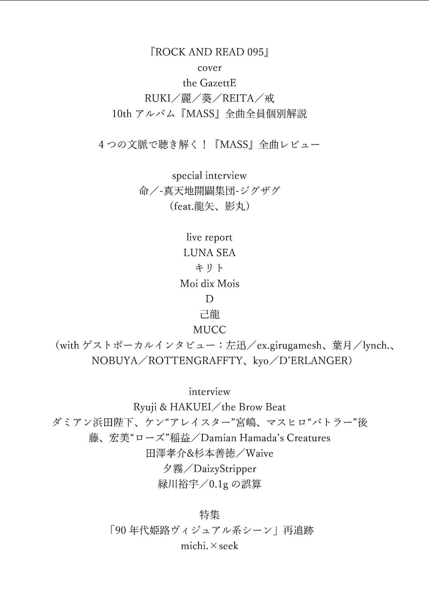 『ROCK AND READ 095』掲載のお知らせ