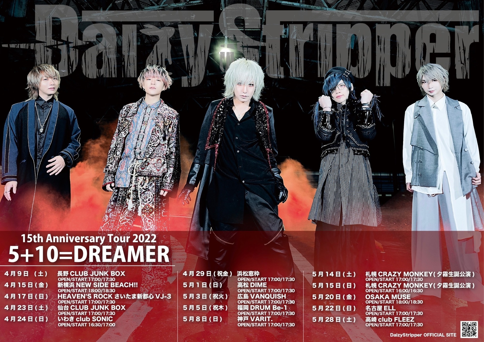 1月21日(金)20:00よりDaizyStripperオフィシャルLINE及びツイキャス、デジラビにて、15th Anniversary Tour 2022「5+10=DREAMER」各地のセットリスト担当者決定会議を配信致します。