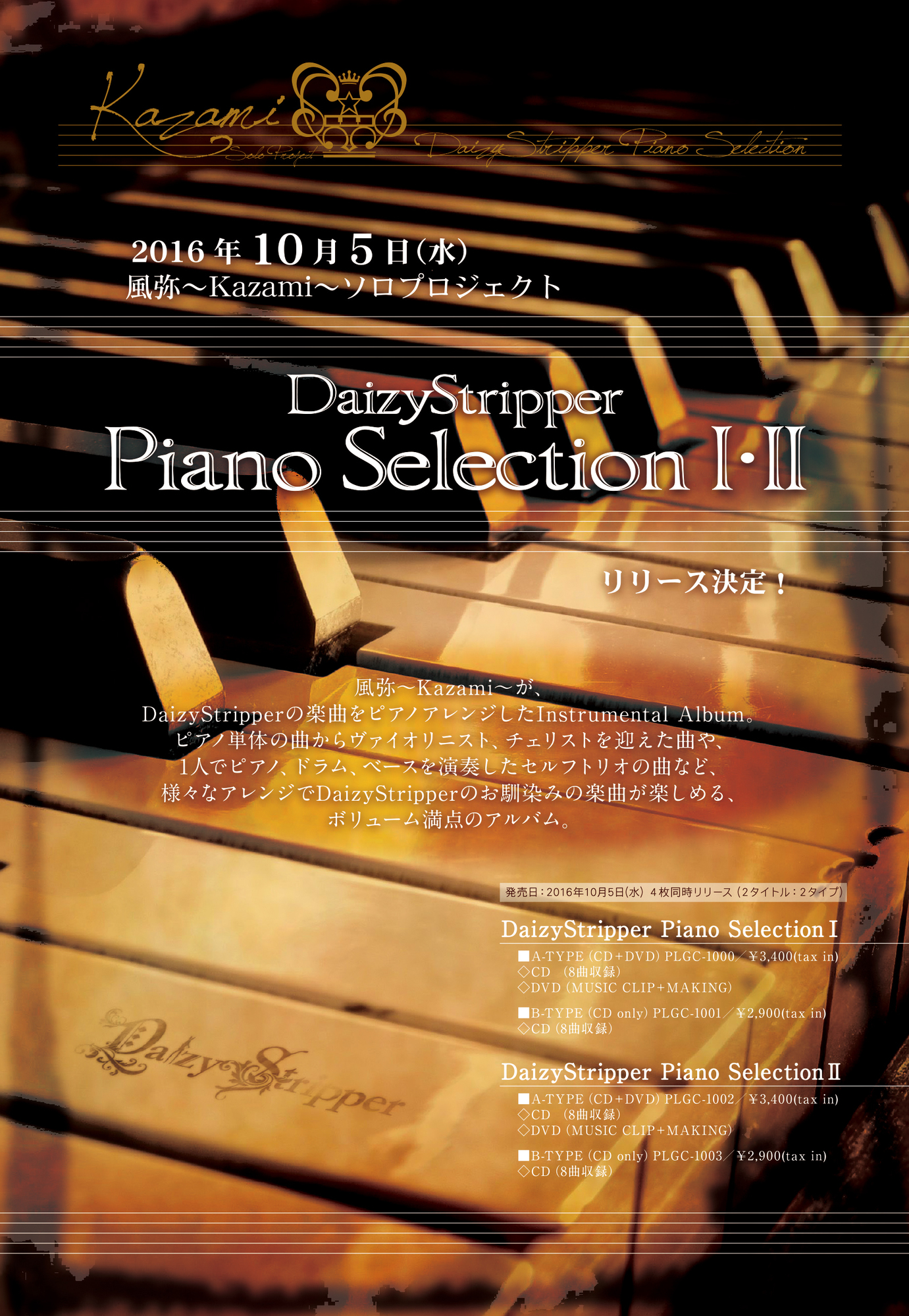 風弥~Kazami~ソロプロジェクト【DaizyStripper Piano Selection Ⅰ、Ⅱ】同時リリース決定!