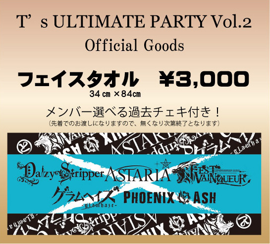 7/23(土)新宿BLAZEにて行われるT’s ULTIMATE PARTYにてオフィシャルグッズとしてフェイスタオルの販売をします!