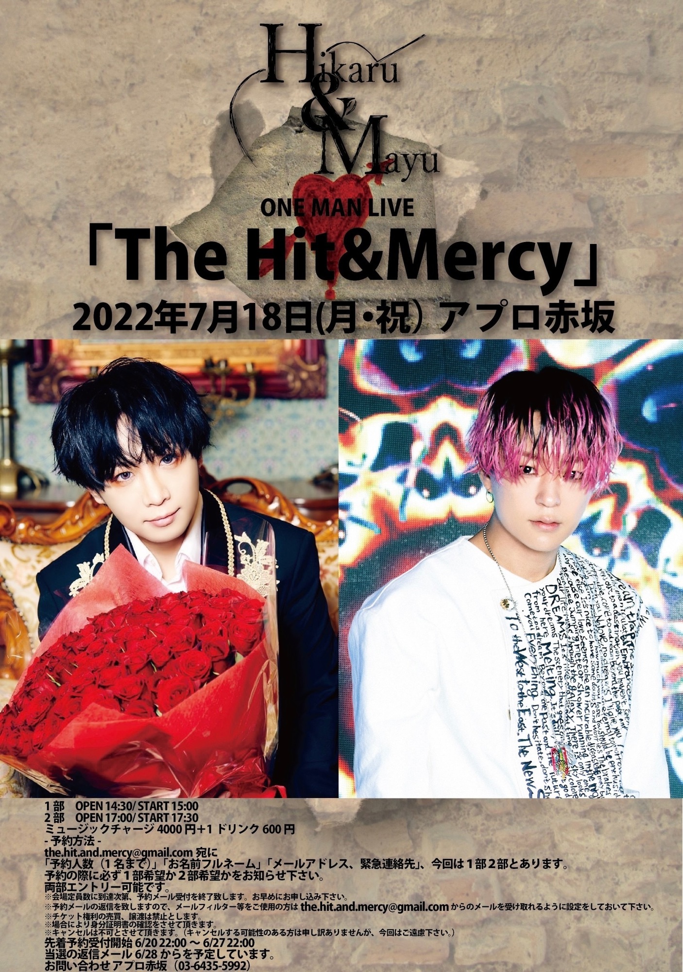 ※予約メールの返信を致しますので、メールフィルター等をご使用の方は「the.hit.and.mercy@gmail.com」からのメールを受け取れるように設定をしておいて下さい。