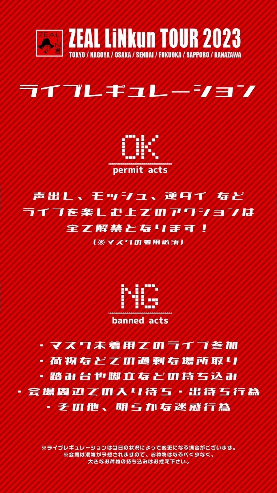 「ZEAL LiNkun TOUR 2023」ツアーグッズ発売決定!&レギュレーションのお知らせ