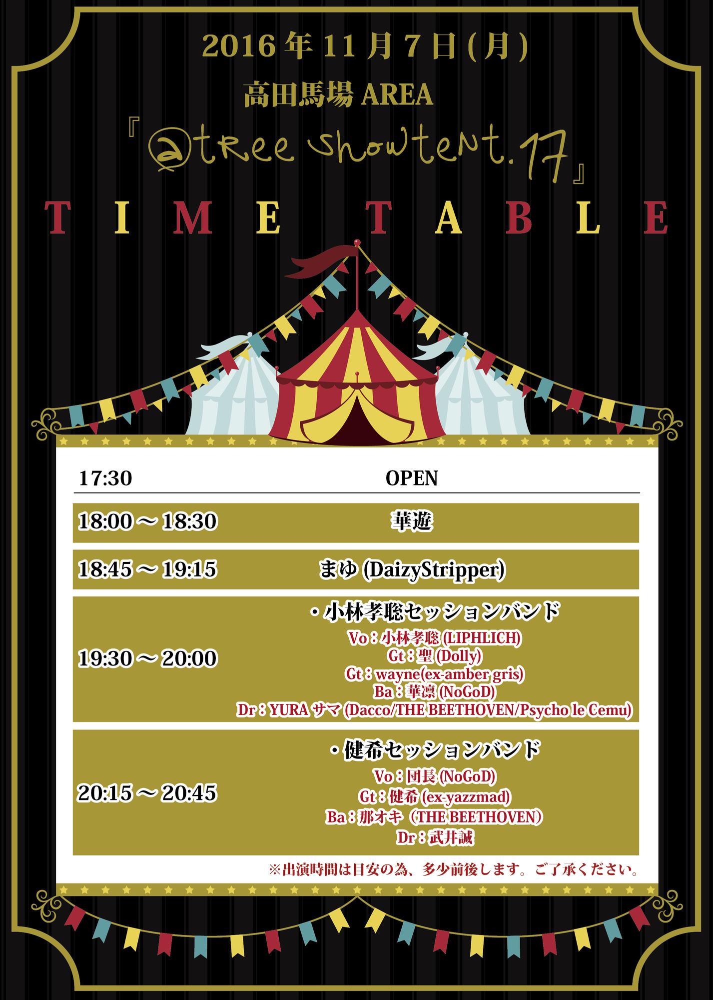まゆ出演 11/7 高田馬場AREA「@tree showtent.17」タイムテーブル公開!