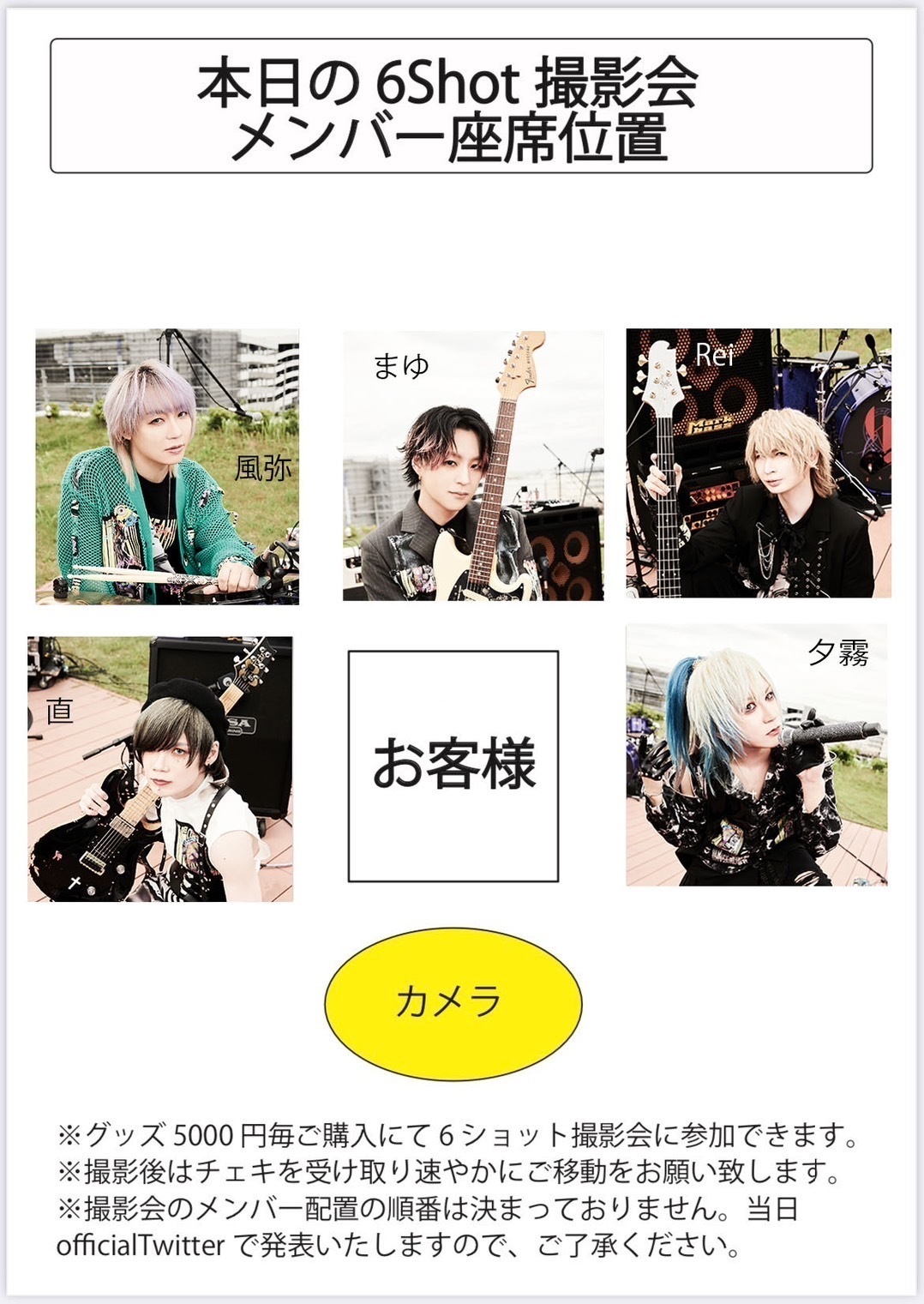 ・物販5,000円分お買い上げで終演後6ショットチェキ撮影会に参加頂けます。