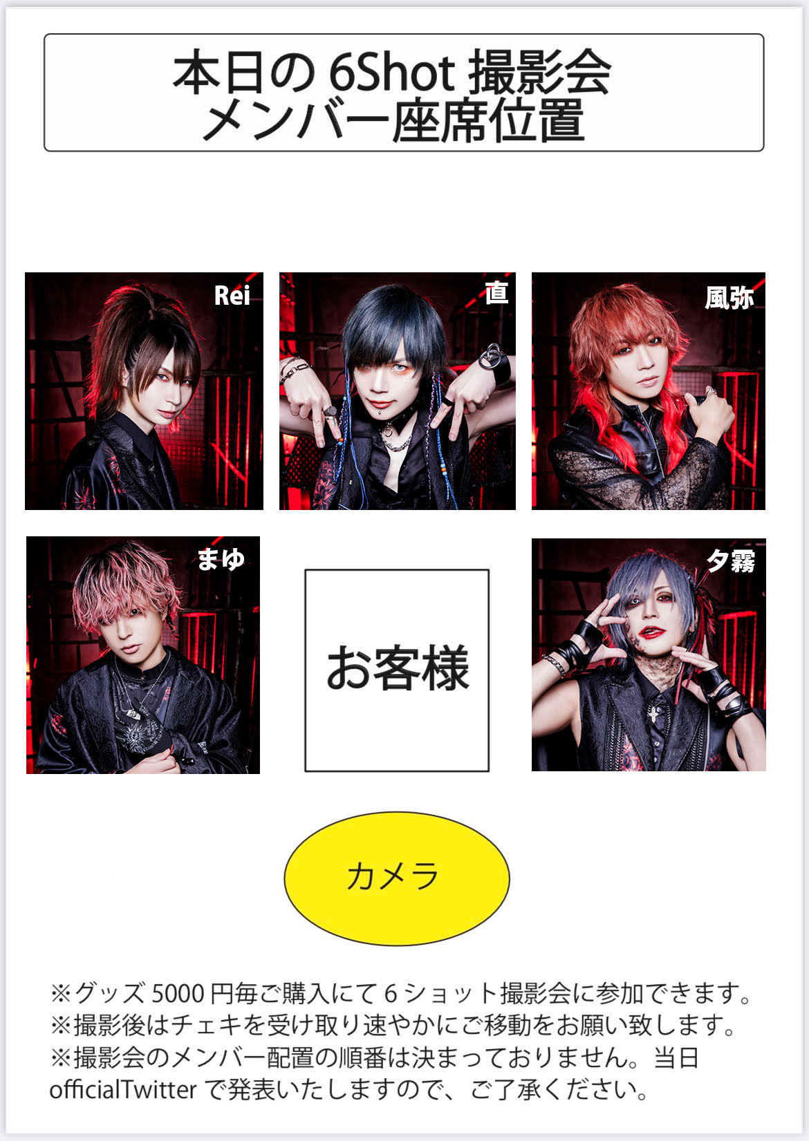 ・撮影会ではメンバーおよびお客様の座り位置は指定できません。