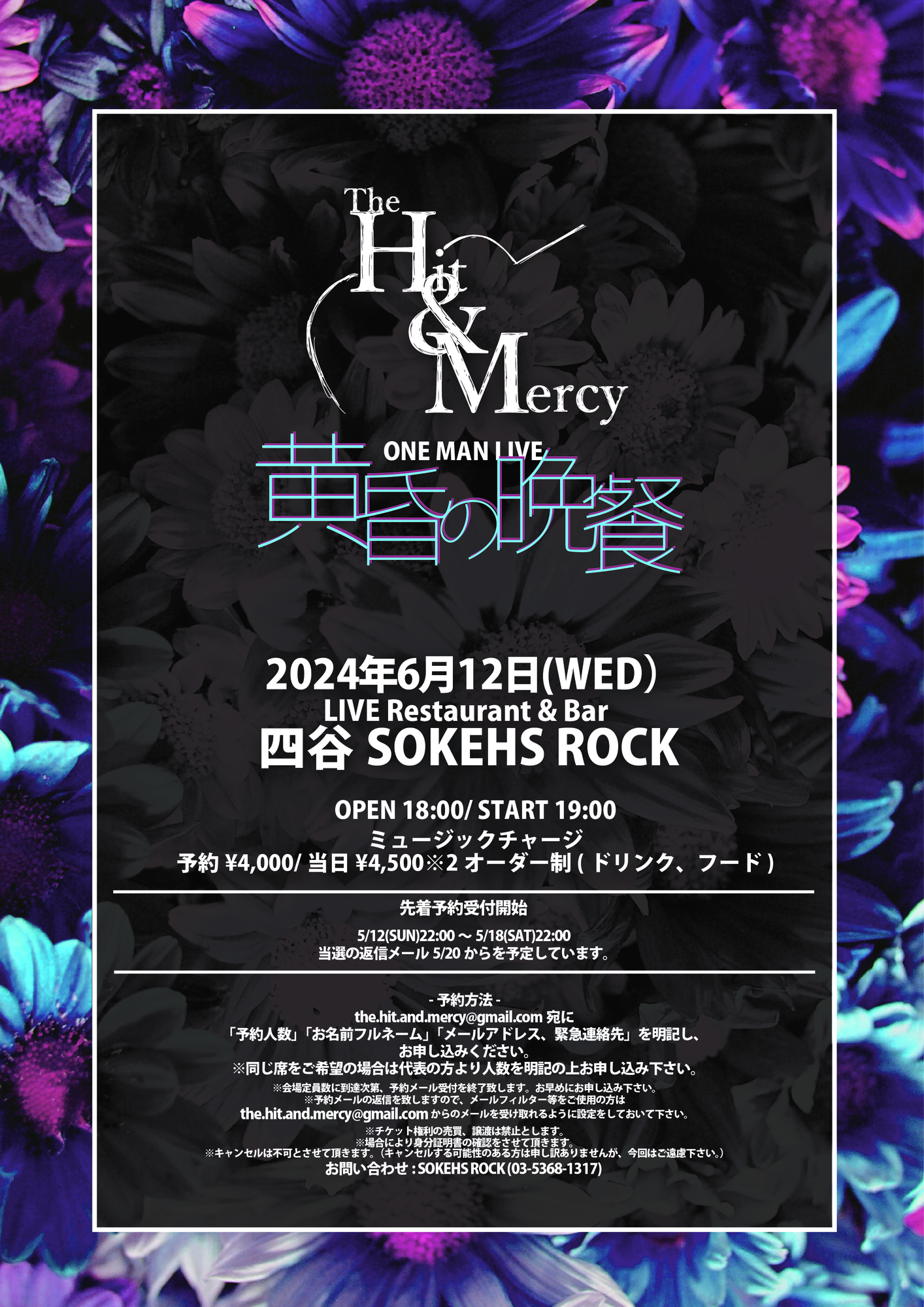 ※予約メールの返信を致しますので、メールフィルター等をご使用の方は「the.hit.and.mercy@gmail.com」からのメールを受け取れるように設定をしておいて下さい。