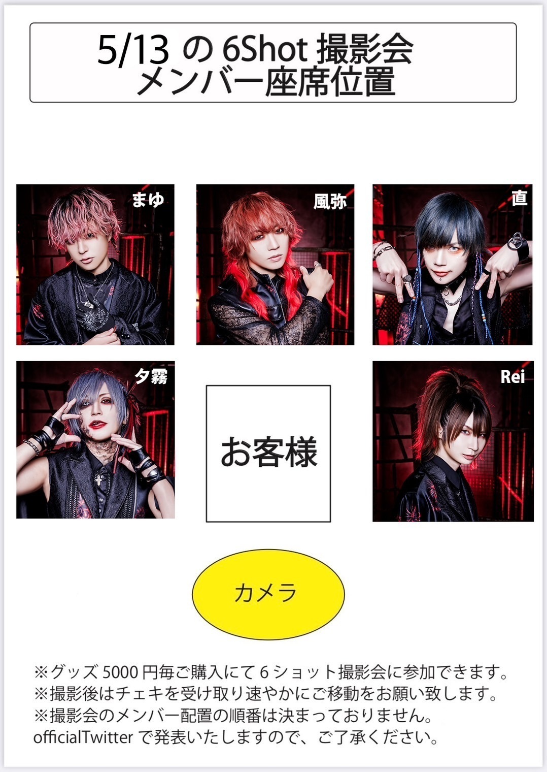 ・撮影会ではメンバーおよびお客様の座り位置は指定できません。