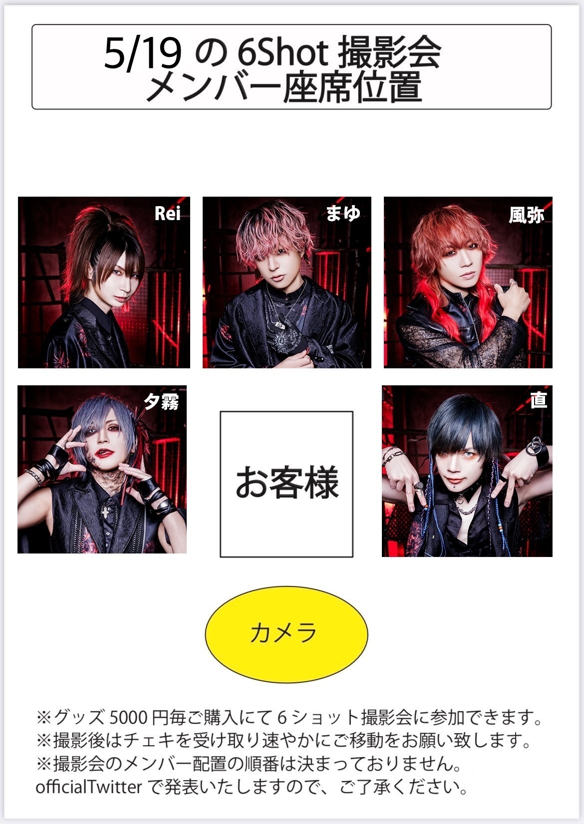 ・撮影会ではメンバーおよびお客様の座り位置は指定できません。