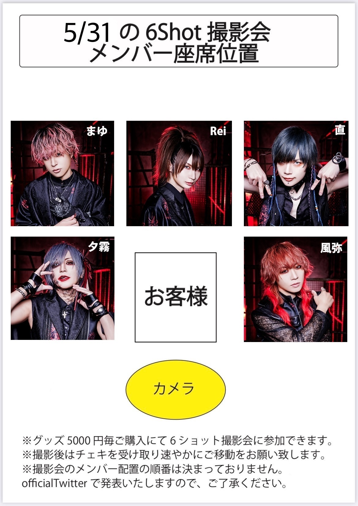 ・撮影会ではメンバーおよびお客様の座り位置は指定できません。