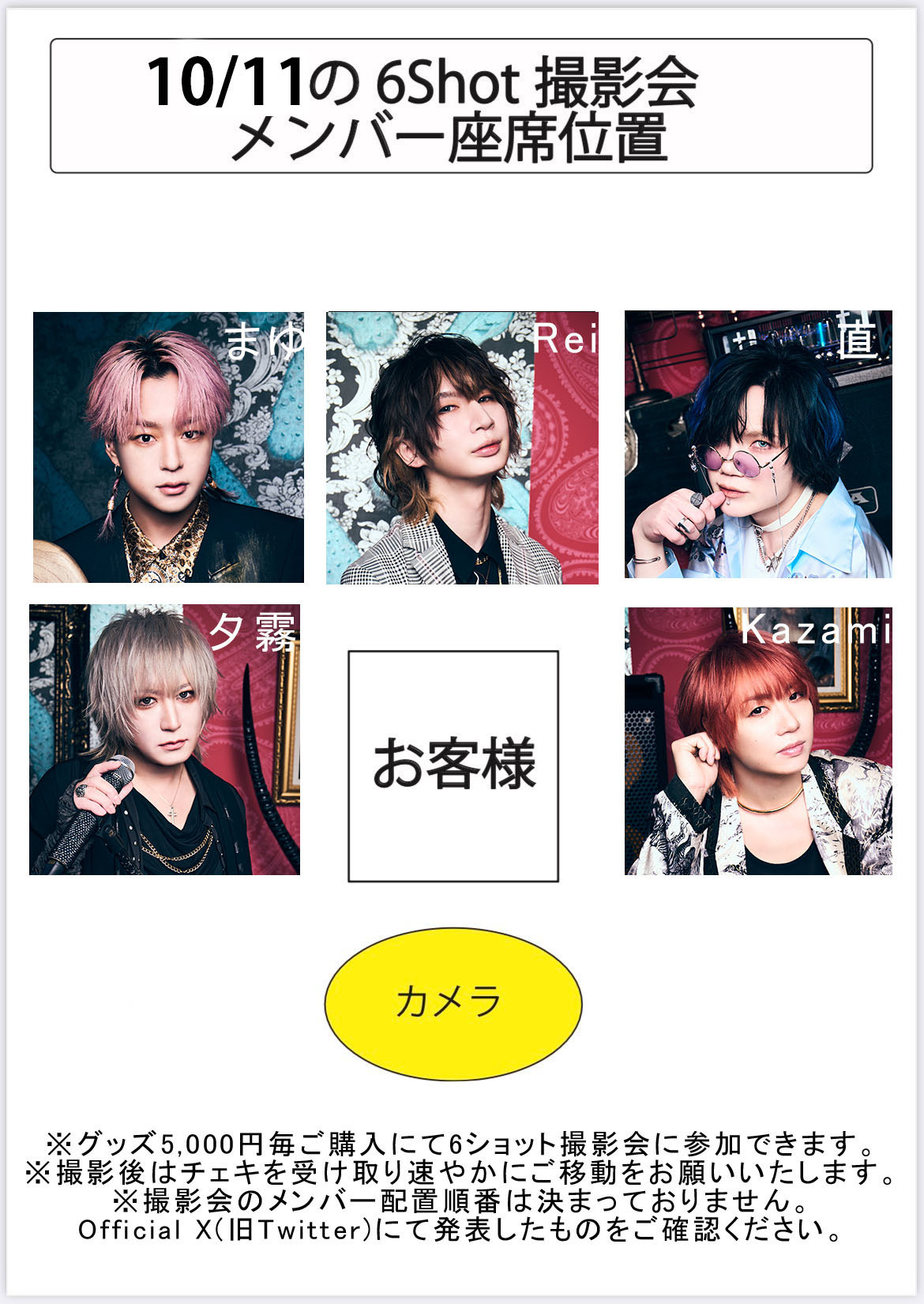 ・撮影は「6ショット」のみとさせていただきます。メンバーのみ、もしくは6名を超える人数での撮影は行えません。