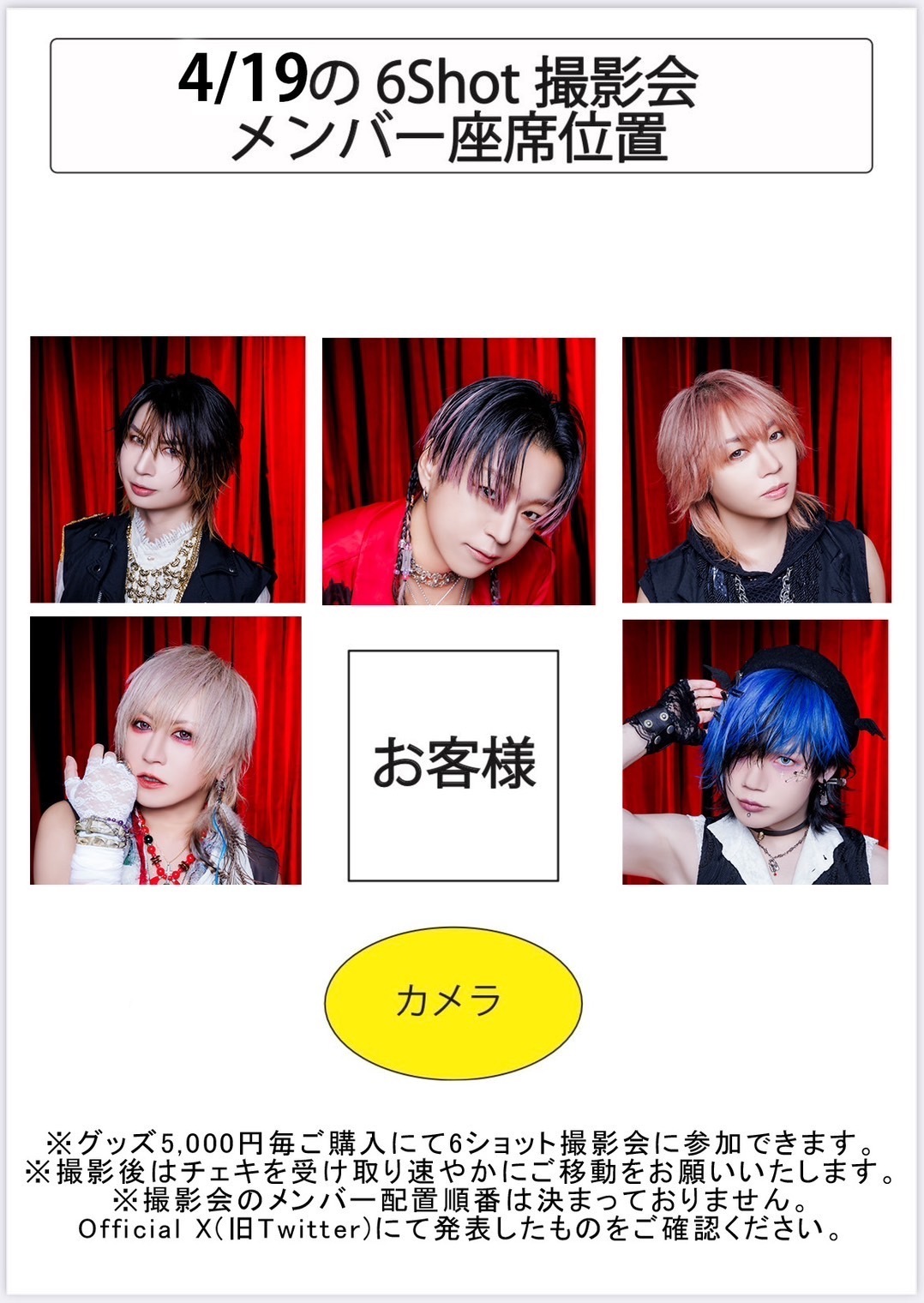 ・撮影は「6ショット」のみとさせていただきます。メンバーのみ、もしくは6名を超える人数での撮影は行えません。