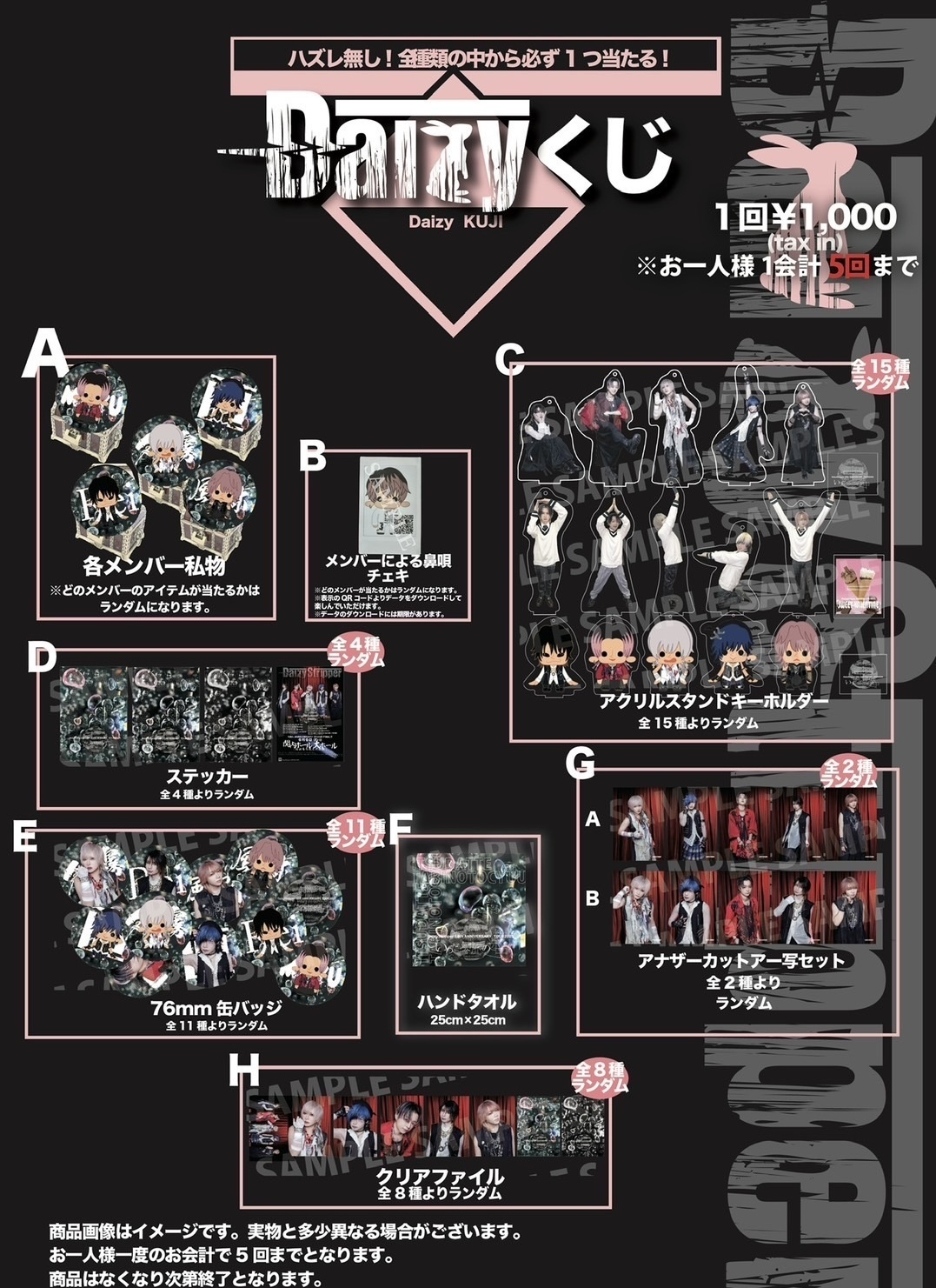 ・物販商品10,000円お買い上げ毎に1枚、メンバー集合5shot当日チェキ引換券をお渡しします。終演後に物販ブースにてお引き換えください。